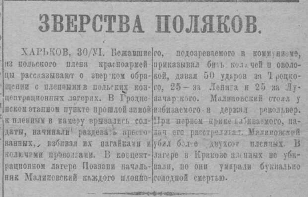 Описание некоторых эпизодов массовых убийств поляками пленных красноармейцев во время польско-советской войны.