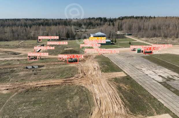 Специальная система устанавливаемая на беспилотник в автоматическом режиме определяет и маркирует цели на поле боя. Как людей, так и технику. Попутно, определяет расстояние до цели.